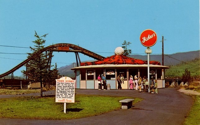 The Pixie Kitchen was located on the 101 in Lincoln City and was open from 1953 to 1985. It was by far one of the best places to stop with the family when visiting the Oregon coast. When you walked in there were fun-house mirrors and kids got tokens at the end of the meal which they could exchange for salt water taffy. From the dining room you could look out at the courtyard at the Pixie Grotto that was full of mischievous, mechanical pixies. They even opened an amusement park called Pixieland, which was open from 1969 to 1974.