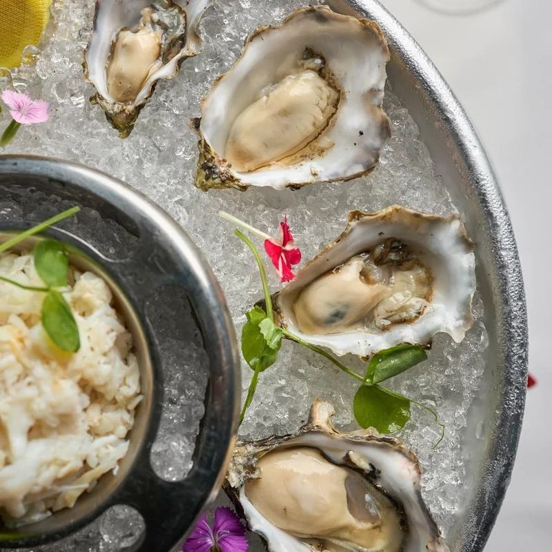 The menu extends well beyond beef. Seafood plays a major role here, from West Coast oysters served with champagne mignonette to a show-stopping seafood tower stacked with oysters, shrimp, mussels, and Dungeness crab.