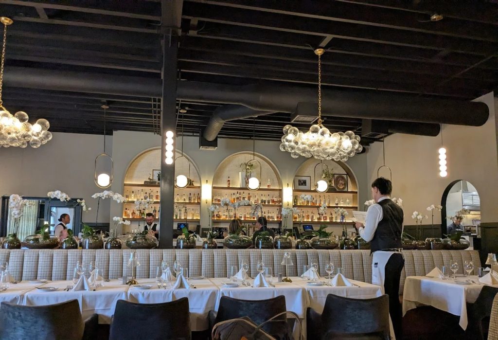 What now greets diners is a refined blend of vintage steakhouse charm and modern elegance: plush booths, thoughtfully spaced tables, warm lighting, a beautifully designed bar, and a private dining room that feels purpose-built for celebrations and business dinners alike.